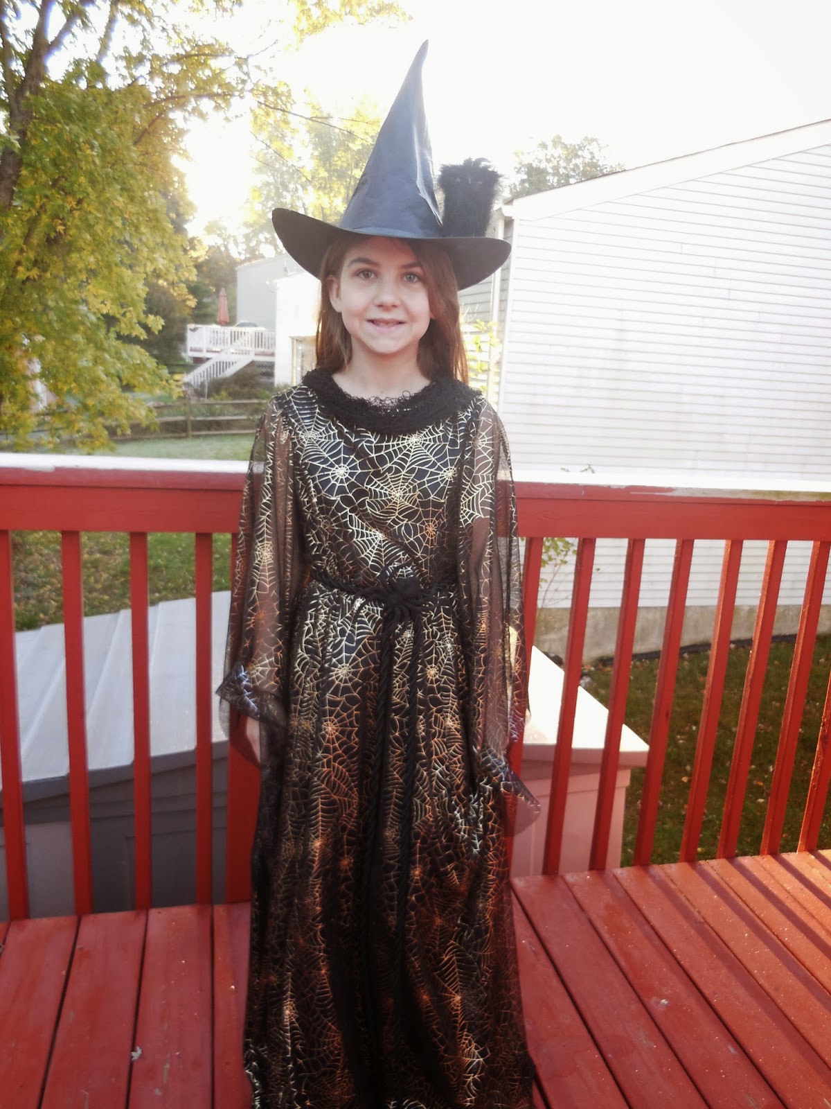 Happy belated 11th birthday to our sweet Eleanor! So hard to believe you are 11 now!!! She's modeling this year's Halloween costume. The main part of the dress is made from Simplicity 1557, which is actually a Merida dress, but I just used the main part for what we wanted. The sleeves are from Simplicity 5520. I would have used that pattern for the entire dress, but it only goes up to size 8. Simplicity 1557 is the only pattern of this style that goes up to size 14. A lot of them go to size 8 and then start with adult sizes. While Eleanor can wear some adult sizes, the one pattern I purchased was just wrong in so many ways, so this was a much better "fit" for her. I cut a size 12 based on her measurements, but I think a 10 would have been a better fit. It's not all bad in that because it's big, she can easily wear warm clothes under the dress for trick-or-treating.